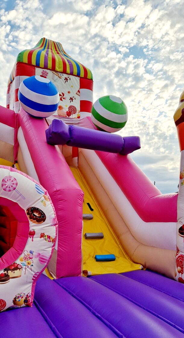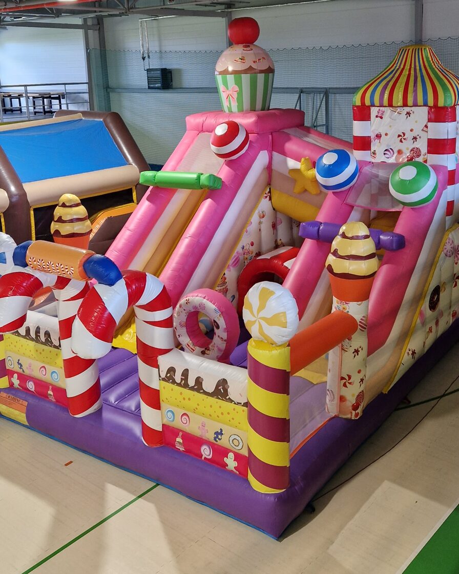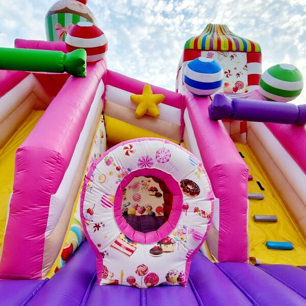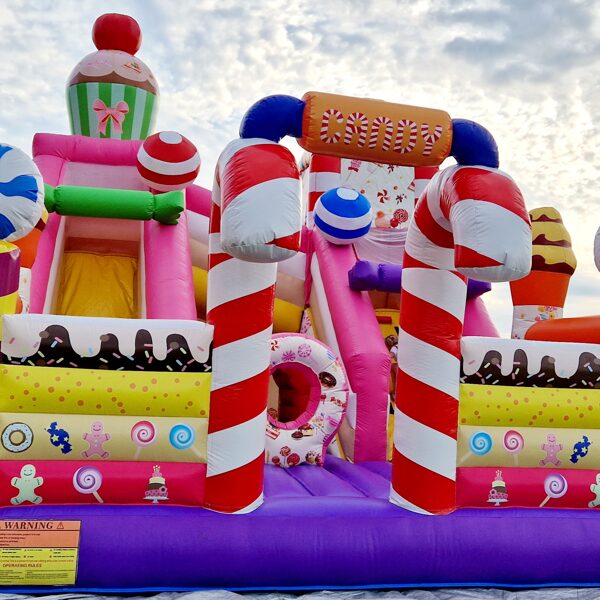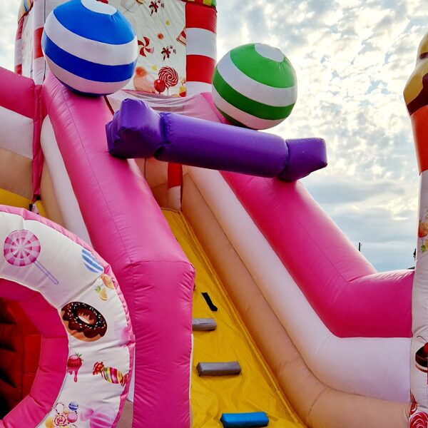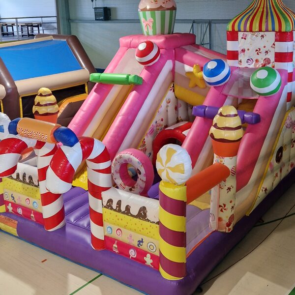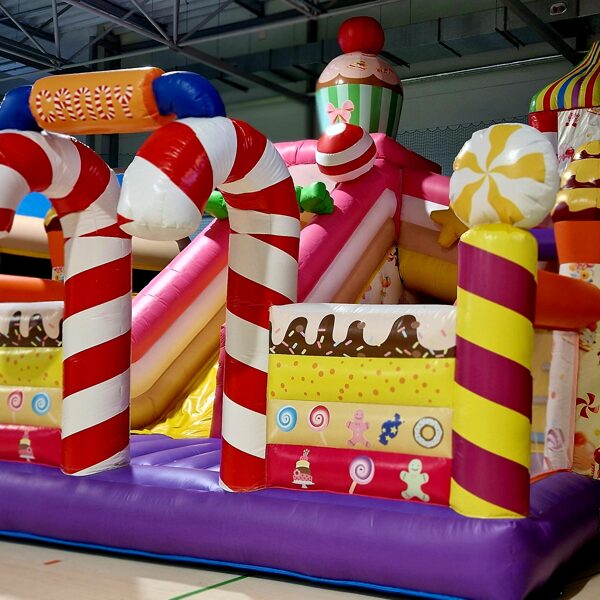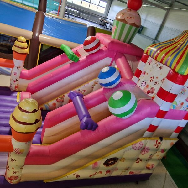 Šī saldumu tematikas piepūšamā atrakcija ir gatava piepildīt bērnu ballīti ar smiekliem, rotaļām un prieku!