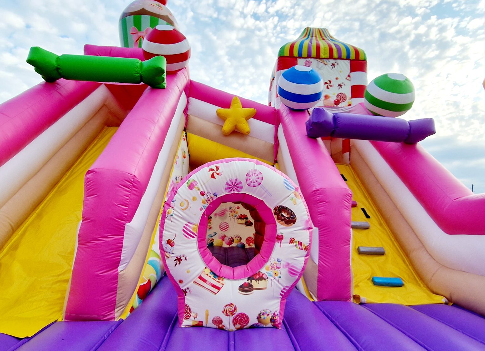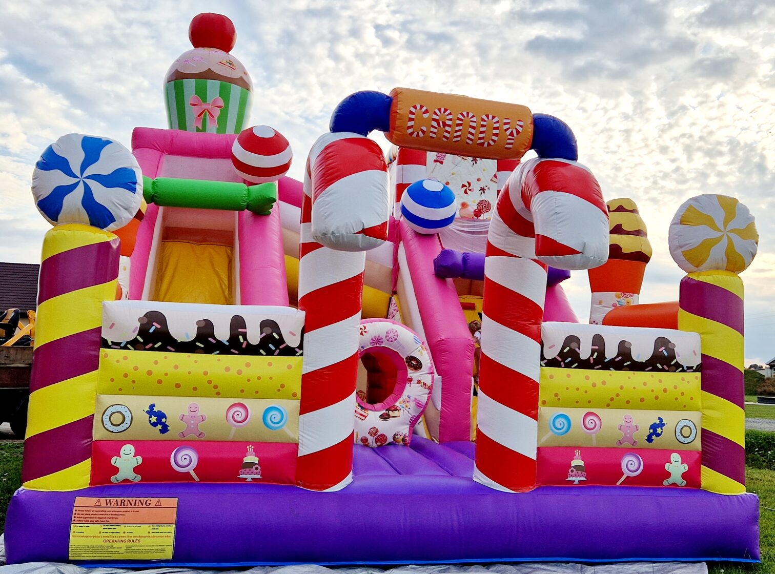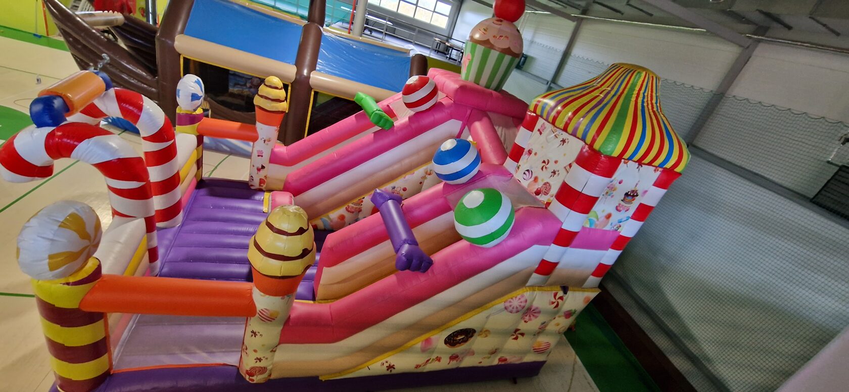 Šī saldumu tematikas piepūšamā atrakcija ir gatava piepildīt bērnu ballīti ar smiekliem, rotaļām un prieku!
