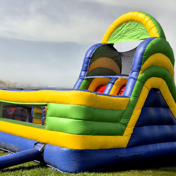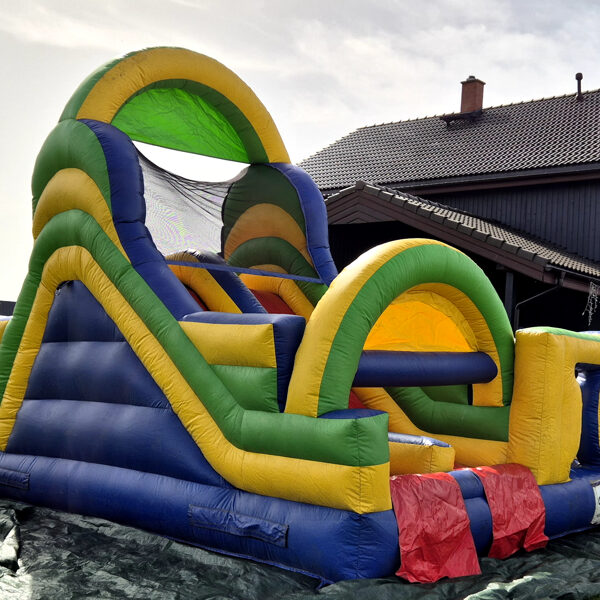 Piepūšamā atrakcija "Šķēršļi un slidkalniņi"
