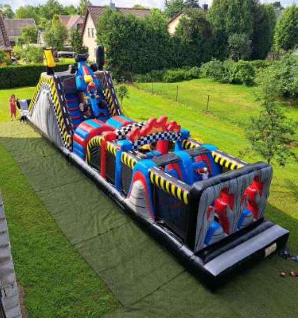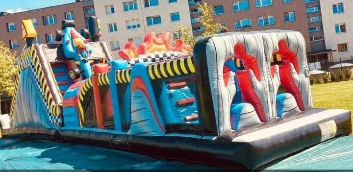 Piepūšamā atrakcija “Formula 1” piedāvā īstu piedzīvojumu – bērni var skriet cauri šķēršļiem, kāpt augšup un finišā traukties lejā pa lielo slidkalniņu kā īsti sacīkšu čempioni!